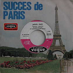 A highly popular English pop singer and actress, born Sally Petula Olwen Clark in 1932 in Epsom, Surrey. A non-UK single, featuring two French language songs.