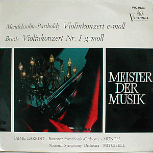 | Violin concertos by Bruch and Mendelssohn-Bartholdy, played by Jaime Laredo. Late 1960s / early 1970s German reissue of RCA Red Seal LM-2472 (USA 1961). Mono.