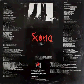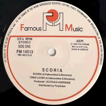 An interesting Greek post punk / new wave band, formed in 1983 in Peiraias, Attica. 12 inch 33 rpm 4 track extended play: " Scoria" / "Tired Lover" // "No More Cries" / "Ladies and Gentlemen Please Welcome...Your New Golden God". Their first record.