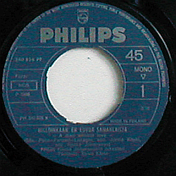 Tummansininen etiketti hopeateksteiilä. Ylhäällä hopeinen Philips-logo.