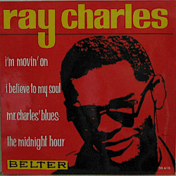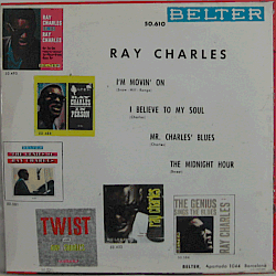 | A legendary American rhythm & blues singer-songwriter and musician, born Ray Charles Robinson in Albany, Georgia in 1930. Hard-to-find Spanish 4-track EP: "I'm Movin' On" / "I Believe to My Soul" // "Mr. Charles' Blues" / "The Midnight Hour". His 11th or so Belter EP.