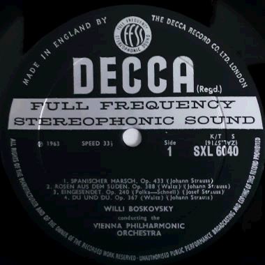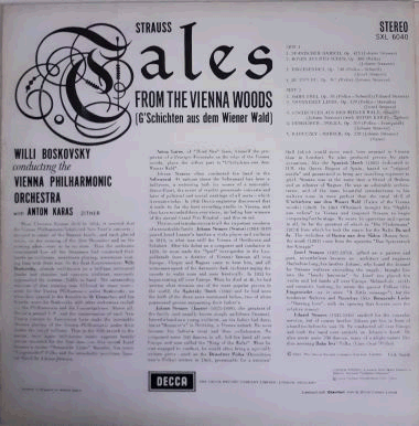 | Music from the Vienna woods by the Strauss family, conducted by Willi Boskovsky featuring Anton Karas. 2nd edition stereo issue.