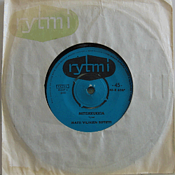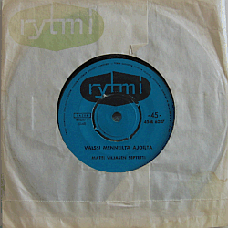 Sininen etiketti. Ylhäällä sininen Rytmi-logo mustassa laatikossa. Vähäistä kulumaa kummankin puolen keskiössä.
