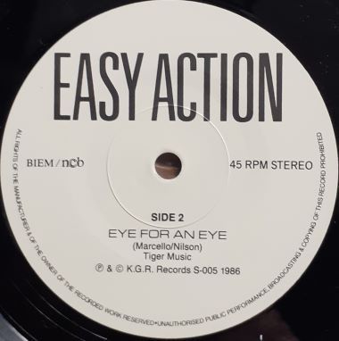 | White labels. Big black Easy Action logo on top. |  | Glossy picture sleeve. Light dirt marks on each side, more on back. Some tiny creases along the edges. Slightly worn corners. |