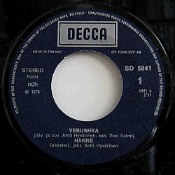 Aavasaksalla 1954 Eija Hannele Höynälänä syntynyt iskelmälaulajatar. A-puolella Hannen suurimpiin hitteihin lukeutuva, Antti Hyvärisen säveltämä / sovittama "Verushka", takasivulla saksalaista alkuperää oleva coveri. Molempiin sanat on tehnyt Vexi Salmi. Orkesterin johto Antti Hyvärinen.
