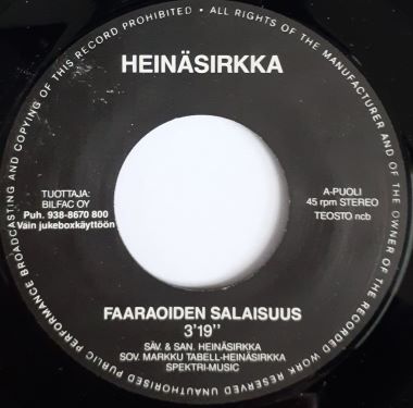 Faaraoiden salaisuus / Rautaa & magneettia (jukebox only 45) (FIN)* |  | Price: (Euro)