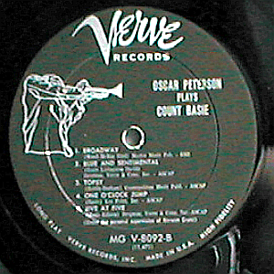 | A world-famous Canadian jazz pianist, composer and bandleader, born in 1925 in Montreal, Quebec. With Herb Ellis (guitar), Ray Brown (bass) and Buddy Rich (drums). 1957 Clef Series reissue of Clef MGC-708 (USA 1956). Rare original "trumpet player" label issue.