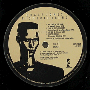 | Special light brown and black Grace Jones picture labels. |  | Glossy single cover. A few light creases along the edges. Slightly worn corners, one of them (> bottom > left) being also a bit creased. |