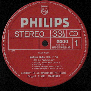 Joseph Haydn's "Symphony in G major, Hob. I:94 - The Surprise Symphony" and "Symphony in D major, Hob. I:96 - The Miracle Symphony". Performed by the Academy of St. Martin-in-the-Fields orchestra, conducted by Neville Marriner.
