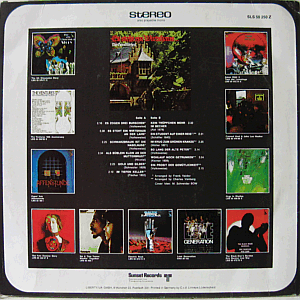 Black labels with silver print and blue 'slice' on the left. Boxed multicoloured Sunset picture logo on the left.Laminated (> front only) single cover. A few light dirt marks on back. Light creases along the edges. Some corner wear, one of the corners (> top > left) being also a bit creased / slightly bent.