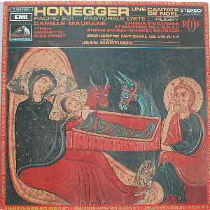Swiss-French composer, also a member of Les Six. Side A = "Une cantate de Noel". Side B = "Pacific 231" (mouvement symphonique), "Pastorale d'été" (poème symphonique) and "Rugby" (mouvement symphonique). Editions Salabert. Late 1970's or early 1980's issue, I should think.
