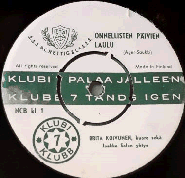 Tupakoinnin ihanuutta ja Klubi 7 -savukemerkkiä edistämään pyrkinyt turkulaisen P.C. Rettig & Co;n mainossingle. A-puolella Brita Koivunen laulaa Saukin sanoin ja Jaakko Salon yhtyeen komppaamana Milton Augerin laulkun "Happy Days Are Here Again". B-puolella Koivunen ja Seija Karpiomaa laulavat (erikseen) Yrjö Haapasen suoltessa väliin Klubi-historiikkia.