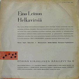 | Lausuntataitelija Yrjö Jyrinkoski esittää Eino Leinon "Helkavirsistä" runot "Ylermi", "Tuuri", "Äijön virsi", "Kimmon kosto", "Raikkö Räähkä" ja "Herramme Vapahtajamme". Järjestyksessä kuudes Otavan kirjallinen äänilevy, kymppituumainen pitkäsoitto. Upeakuntoinen yksilö!