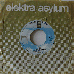 | Light blue and white 'cloudy sky' labels. Black and brown Asylum 'cage' picture logo at the top. |  | Company (Elektra / Asylum) sleeve. |