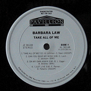 | A renowned Irish singer and actress, born Barbara Dixon in 1952 in Dublin, moved to Canada, got married and became Barbara Law. Promotional copy of her 1st and only album from 1979.