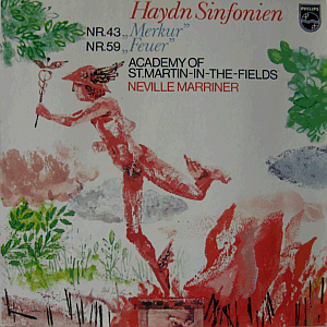 Joseph Haydn's "Symphony in E-flat major, Hob. I:43 - Mercury" and "Symphony in A major, Hob. I:59 - Fire Symphony". Performed by the Academy of St. Martin-in-the-Fields orchestra, conducted by Neville Marriner.