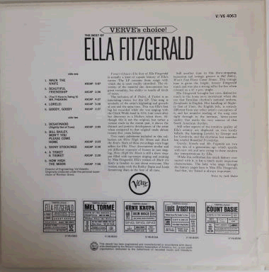 Verve's Choice! - The Best of Ella Fitzgerald (mono) (US) * |  | Price: (Euro)