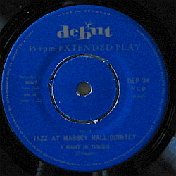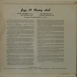 | Recorded live at Massey Hall in Toronto, Canada in May 1953 by Dizzy Gillespie, Bud Powell, Charlie Mingus, Max Roach and Charlie Parker (named here Charlie Chan for contractual reasons) - this was the only time these five legends of modern jazz recorded together as a unit! The recordings were originally released as two 10 inch LPs (Debut DLP-2 and DLP-4, USA) in 1953. In Denmark they were first issued as four EPs.