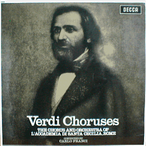 | Choruses from Verdi operas "Il Trovatore", "Nabucco", "I Lombardi", "Aida", "La battaglia di Legnano" and "Attila", performed by Chorus and Orchestra of L'Accademia di Santa Cecilia, Rome, conducted by Carlo Franci. ED2 issue from 1969 or 1970.