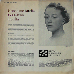 Hämeenlinnassa 1917 syntynyt lausuntataiteilija ja puheilmaisun opettaja Liisa Majapuro tulkitsee vanhojen suomalaisten runon mestareiden hengentuotteita 1500 - 1800-luvuilta. Järjestyksessä 19. Otavan kirjallinen äänilevy. Mono.