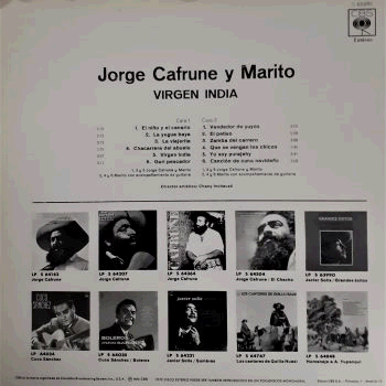 | One of the most popular Argentine folklorist singers Jorge Cafrune (1937 - 1978) together with Marito (Mario Guillermo Perrotta). Their 1st duo album including the beloved "Virgen India". Mono recordings electronically enhanced for stereo.