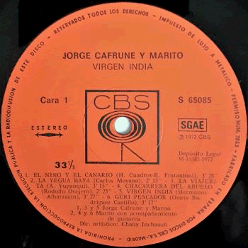 | Matt orange labels. Boxed black CBS 'eye' picture logo in the middle. Black 'Depósito Legal M-16585-1972' fineprint on side A > right. Rights society: SGAE. |  | Laminated single cover. A few light dirt marks on back. Lamination bubbles (> spine) and light creases along the edges. Slightly worn corners.