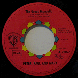 | A world-famous American folk trio, formed in 1961 in New York City. German only picture sleeve issue of their 21st or so single.