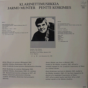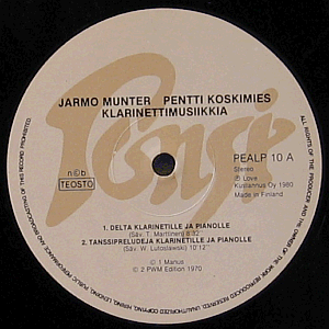 Klarinetisti Jarmo Munter soittaa Pekka Kostiaista, Igor Stravinskya, Tauno Marttista ja Witold Lutoslawskia Pentti Koskimiehen pianosäestyksellä. Äänitetty Love Recordsin studiossa 1978. Huippukuntoinen harvinaisuus turhan suppeaksi jääneestä Ponsi-katalogista.