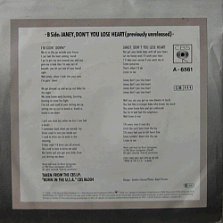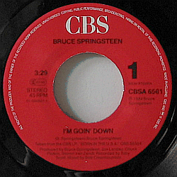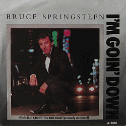 | A true American icon of rock music, born in 1949 in Freehold, New Jersey. "I'm Goin' Down" is taken from the "Born in the U.S.A." album, "Janey, Don't Lose Heart" being previously released material. Dutch / European issue of Columbia 13-08413 (USA 1985). His 26th or so single, released in August 1985.