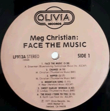 | Light brown labels, black Olivia picture logo at the top. |  | Semi-glossy single cover. Very light surface wear on each side (> top > middle). Some wear and light creases along the edges. Light corner wear. |