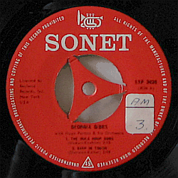 Red labels. White Sonet 'trumpet' picture logo at the top. Sticker on side A.