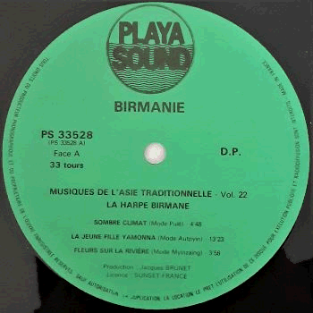 | Traditional Burmese harp music in "Musiques de l'Asie Traditionelle" series, volume 22, recorded from 1975 to 1979. A lot of information, both in French and English. Possibly a reissue.