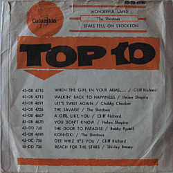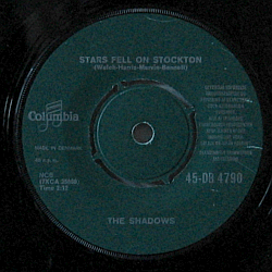 No doubt the most influential instrumental rock band of all time, formed in 1958 as a backing band for Cliff Richard. Originally they were called The Drifters but became The Shadows in early 1959, featuring Hank Marvin as their new lead guitarist. And that's where the story begins... Danish issue of their 8th single.