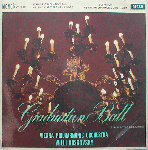 "Graduation Ballet" by Johann Strauss jr. takes most of the album, the rest is dedicated to "Le Spectre de la Rose" (Invitation to the Dance, Op. 65) by Carl Maria von Weber. Mono issue.