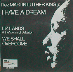 Rev. Martin Luther King jr. and his famous "dream" speech. On side B Liz Lands & the Voices of Salavation sing "We Shall Overcome". Released originally in 1963 as Gordy 7023 (USA) and reissued (after the assassination of Dr. King) in 1968 with the same catalogue number. Dutch 1968 issue on Tamla Motown, in a picture sleeve, advertising nine Tamla Motown albums on back . Very hard to find these days.