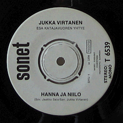 | Jämsänkoskella 1933 syntynyt suomalaisen viihde-elämän suurmies. A-puolella Jukka esiintyy yksin, takasivulla Marjatta Leppäsen kanssa. Kummallakin puolella säestyksestä vastaa Esa Katajavuoren yhtye. Artistin esikoissinkku.