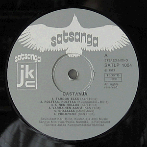 | Harmaa eiketti. Ylhäällä valkoinen ja harmaa Satsangan 'kotka'-kuvalogo, vasemmalla valkoiset Satsangan ja JKC:n logot. |  | Kiiltäväpintaiset kannet. Kevyttä pintakulumaa molemmin puolin (> lähinnä > ylhäällä & alhaalla > keskellä), enemmän takana. Kevyttä kulumaa ja muutama pikkuryppy reunoissa. Karvan verran kuluneet / ruttaantuneet kulmat. |