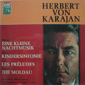 | Herbert von Karajan conducting Berliner Philharmoniker (Mozart and Smetana) and the London Philharmonic Orchestra (Haydn and Liszt). Late 1960s or early 1970s stereo issue, I should think.