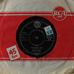 The most successful American rock & roll instrumentalist, with over 100 million records sold, born in 1938 in Corning, New York. Credited to Duane Eddy and The Rebelletes. UK issue of RCA 47-8087 (USA 1962). His 3rd RCA / RCA Victor single.