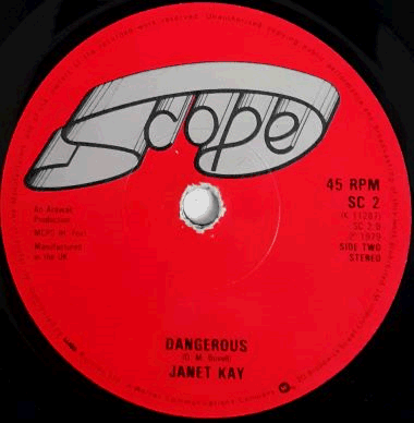 | Red labels. Black & silver Scope logo at the top. Some writing (> name of the previous owner) on side A. Some wear along the centre hole. MCPS on labels. |  | Silver and black company sleeve (> released without a picture sleeve). Some writing (> name of the previous owner) on back. Worn / creased / bent corners. |
