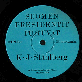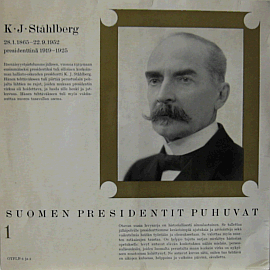 Otavan julkaiseman levysarjan "Suomen presidentit puhuvat" ensimmäinen osa, omistettu maamme presidenteistä ensimmäiselle (1919 - 1925), Suomussalmella vuonna 1865 syntyneelle Kaarlo Juho Ståhlbergille. Ståhlbergin uraa mainiosti valottavan taustatekstin puhujana toimii Sakari Puurunen. Perinjuurin harvinainen - vieläpä upeassa kunnossa oleva - kymppituumainen pitkäsoitto!