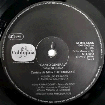 Canto General - Cantate de Mikis Theodorakis sur le Poeme de Pablo Neruda * (EEC) |  | Price: (Euro)