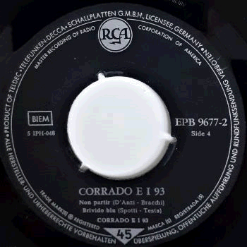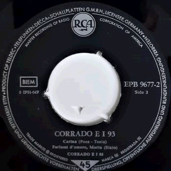 | An internationally renowned Italian pop band, popular especially in Germany, Belgium, Holland, France and Switzerland. Volume 2 (> sides 3 & 4) of a 'double EP' issue (> two EPs with the same picture cover) of 1959 singles: "Carina" /"Parlami d'amore, Mariu" // "Non partir" / "Privido Blu". Mono.