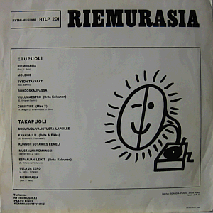 | Punainen (3/4) ja valkoinen (1/4) etiketti. Punainen Rytmi-musiikki -logo oikealla. |  | Kiiltävät kannet. Etupuolella jonkin verran (ympyrä)kulumaa. Takana hieman kirjoitusta (> vasemmalla > keskellä) ja kevyitä likajälkiä. Osittain (> 15 cm > keskeltä) auennut päätysauma. Reunoissa kulumaa ja runsaasti pikkuryppyjä. Jonkin verran kuluneet / ruttaantuneet kulmat.