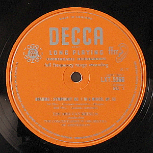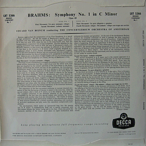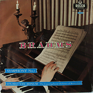 Johannes Brahms' "Symphony No. 1 in C Minor", performed by The Concertgebouw Orchestra of Amsterdam conducted by Eduard van Beinum. Mono issue, not available on stereo (Decca's SXL series).