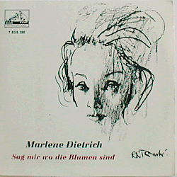 | A world-famous German-American actress and singer, born in 1901 in Schöneberg, Berlin, Germany but became an American citizen in 1939. Four of her best-loved songs: "Sag mir wo die Blumen sind", "Lili Marlen", "Ich hab' noch einen Koffer in Berlin" and "Ich bin von Kopf bis Fuss auf Liebe eingestellt". Swedish issue.