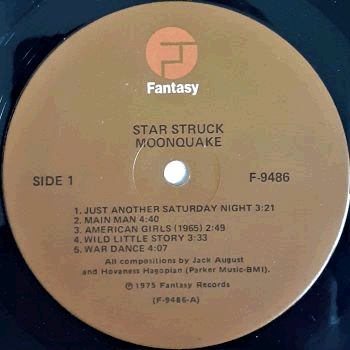 | Brown labels. Beige, orange and brown Fantasy 'F' picture logo at the top. |  | Semi-glossy single cover. Light surface / partial ringwear on each side (> top & bottom > middle). Semi-heavy wear along the edges (> especially > spine). Worn / creased corners. Completely different artwork to the orginal Canadian one. |