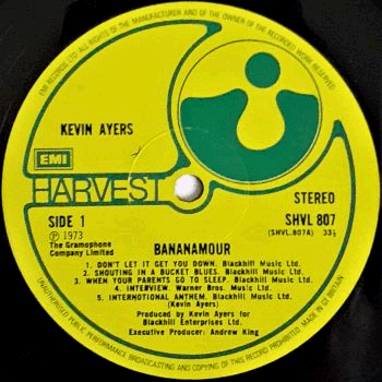 Archie Legget, Robert Wyatt, Steve Hillage, Mike Ratledge, Dave Caswell, Lyle Jenkins and Tristan Fry. Produced by Kevin Ayers. Mid 1970s 2nd pressing of his 4th solo album, released in May 1973.