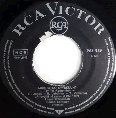 | Helsingissä 1934 syntyneen Lars "Lasse" Anders Fredrik Mårtensonin kaksi suomenkielistä cover-versiota kansainvälisistä hiteistä. Rauno Lehtinen on sovittanut molemmat biisit, A-puolelle sanat on tehnyt Tuula Valkama, takasivulle Mårtenson itse. A-puoli on otettu artistin 1966 ilmestyneeltä esikoisalbumilta "Lasse", RCA Victor LPM 10071.