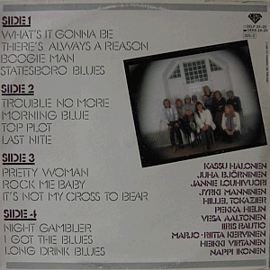 | A highly succesful Finnish composer, musician, arranger and record producer, born in 1953 Kalervo Osmo Väinö Halonen in Säräisniemi, Vaala. With a nice bunch of Finnish top musicians: e.g. Vesa Aaltonen & Heikki Virtanen (Tasavallan Presidentti) and Jyrki "Muta" Manninen (Gringos Locos, Wishbone Ash). Great versions of e.g. "Statesboro Blues", "Trouble No More", "It's Not My Cross to Bear", "Last Nite" and "Rock Me Baby". His 2nd solo album, recorded live in studio.